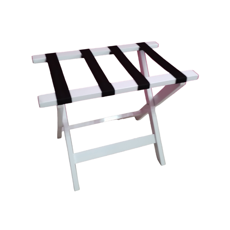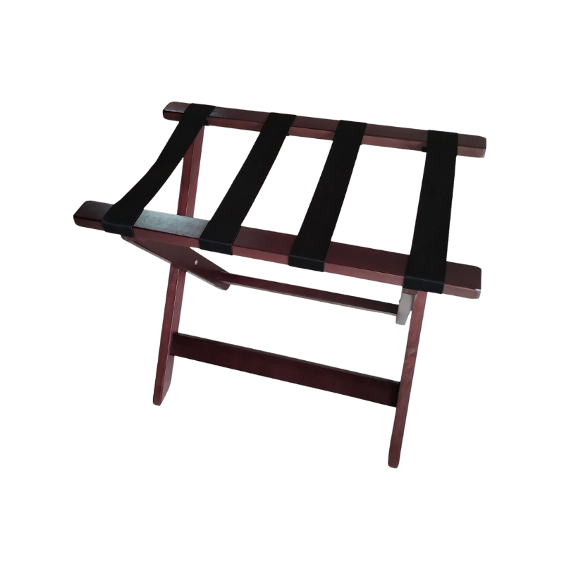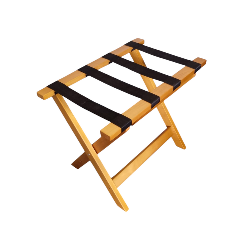 Apoyamaletas plegable de madera con cintas de alta resistencia. Colores: Roble | Wengue | Negro | Blanco